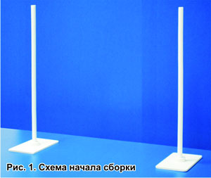 2. Надеть панель с лампами на опорные стойки и уложить шнуры в прорези опорных стоек (рис. 2).