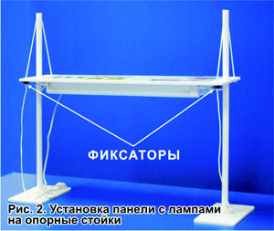 4. Нажатием на фиксаторы установить необходимую длину шнуров и таким образом отрегулировать высоту панели (Рис.2).
