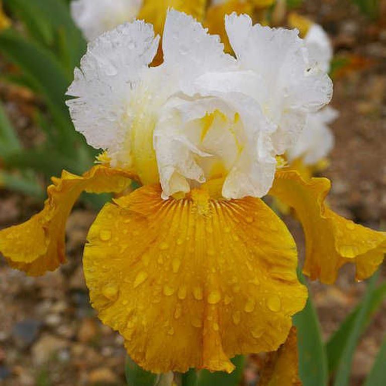 Великолепный сорт, благодаря чёткому контрасту между чисто-белыми стандартами и золотисто-карамельными фолами круглой формы! Бородка оранжево-жёлтая. Стебли хорошо разветвлённые уже с самого низа, несут по 10-11 бутонов. Один из лучших в группе амоен медного цвета.
