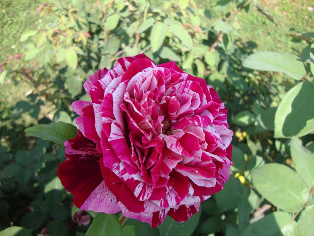 Удивительная роза, необычной окраски. Названа в честь известного стилиста моды Оттавио Миссони. Цветки диаметром 8-9 см, с красными и розовыми полосами и штрихами, которые по-разному расположены на каждом цветке. Аромат сильный, фруктовый. Цветение повторное. Листва устойчивая к болезням. Куст очень прочный, высотой 90-110 см. (rosebarni.it)