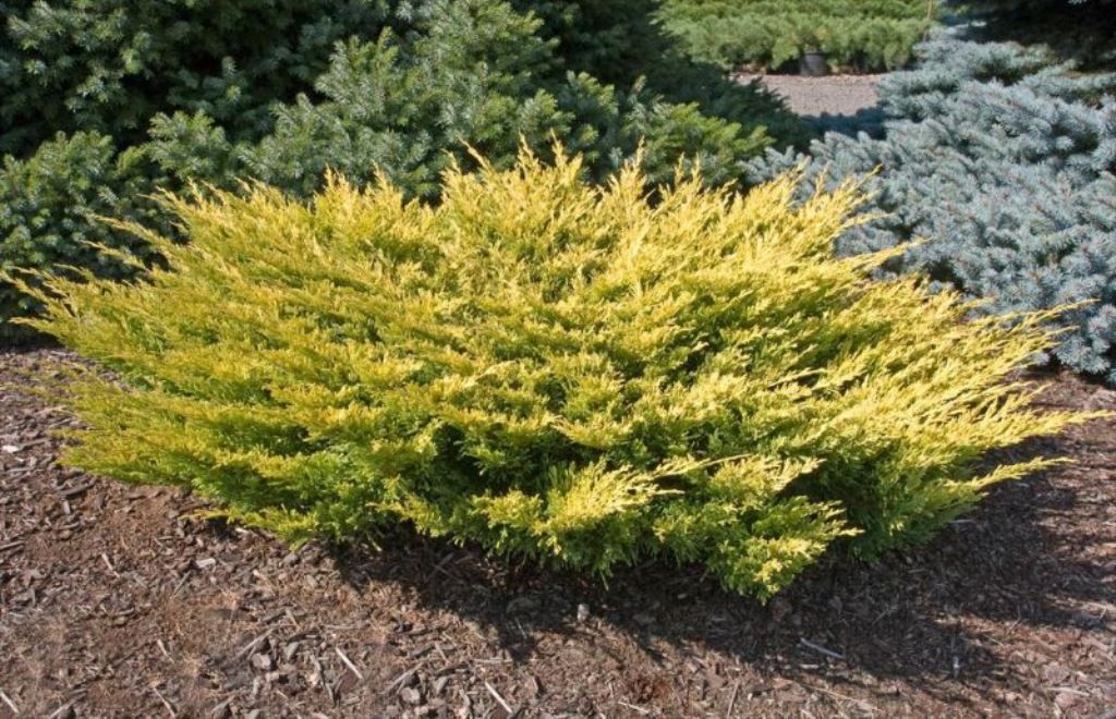 Хвоя: Чешуйчатая, интенсивно золотисто-желтая, осенью оранжево-бронзовая