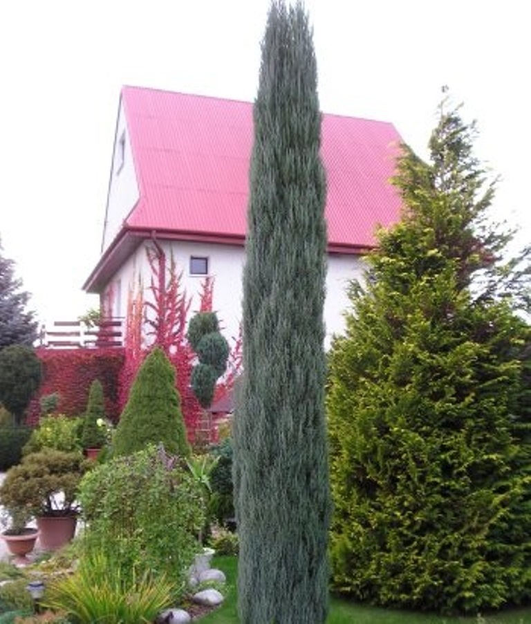 Декоративные качества Блю Эрроу заслуживают самых восхищенных эпитетов и высоких оценок. -- так переводится его название. И действительно - этот стройный высокорослый кустарник смотрится, как устремленная в небо стрела. Крона идеальной конусообразной формы, узкая, с острой верхушкой.